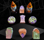 Ouija planchettes and pentacles contain essential lavender and lemon and the Tombstones contain a Spiced Mahogany fragrance.